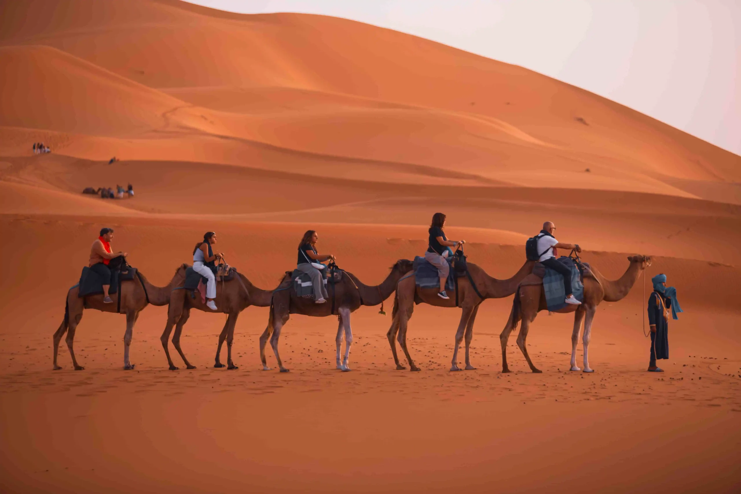 Whether you arrive with your own car or on a tour, your desert journey starts at the edge of the Erg Chebbi dunes. You’ll park safely and meet our team, then go off-road to where the camels are waiting. After a short briefing, you begin a calm ride into the Sahara toward camp. Prefer not to ride a camel? We can take you by 4×4 instead.